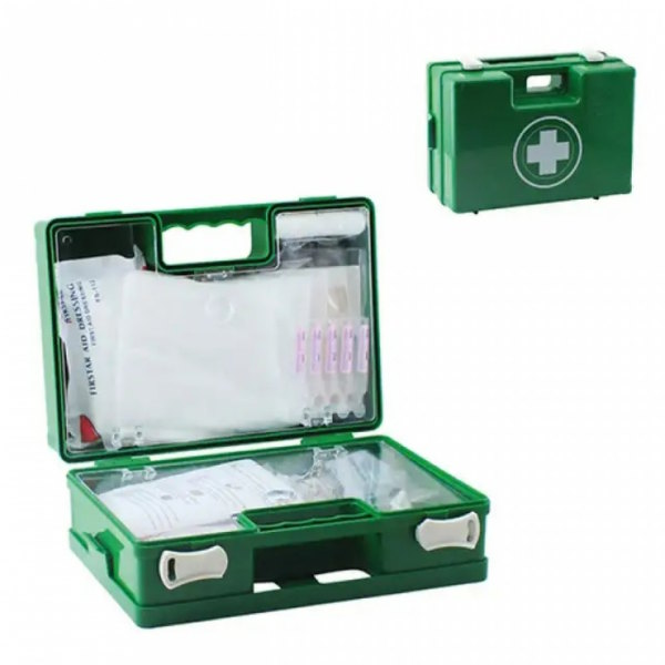 - Caixa de primeiros socorros em ABS verde com pega moldada 28,5 x 19,5 x 11,7 cm;