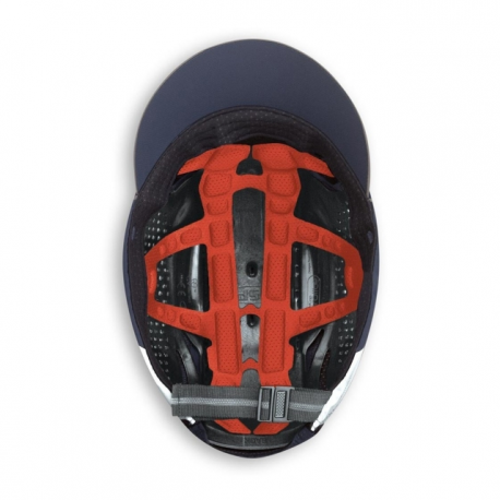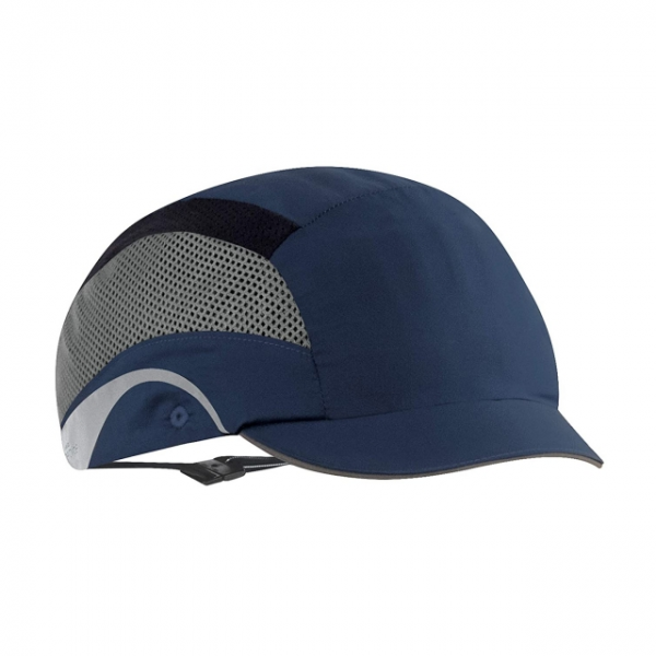 Boné de visitante antichoque; Características: - Poliéster com revestimento repelente de água; - Concha interna em polipropileno expandido com revestimento interno em polietileno de alta densidade (53 - 64 cm); - Banda de suor e revestimento interno em Polygiene®, tratamento anti bacteriano que atua como um desodorizante para neutralizar o desenvolvimento de odores desagradáveis; - Refletor na parte frontal e lateral; - Aperto por mola; - Ventilado para melhor respirabilidade; - Peso <135 gr;
