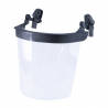 Viseira em policarbonato; Características: - 1,5 mm de espessura; - 389 x 201mm; - Classe ótica: 1; - Oferece o mais alto nível possível de resistência mecânica, resistindo ao impacto de esferas de aço com 6mm de diâmetro e 0,86gr de peso a 120m/s; - Perfil rebatível para permitir levantar a viseira e colocá-la numa posição mais confortável; - Inclui adaptadores para capacete; - Recomendada para os modelos de capacetes: CT2793, CT2794, CT2795, CT2796;