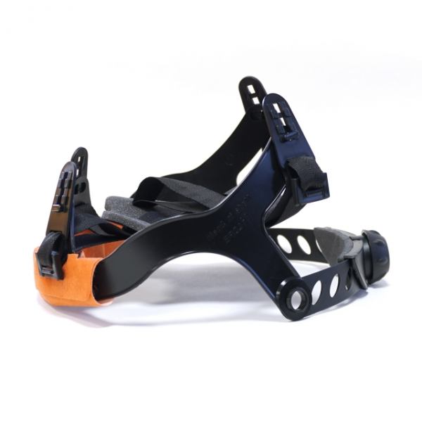 - 4 pontos de fixação (54 - 61cm); - Banda de suor; - Tiras têxteis na zona da nuca com suporte acolchoado; - Arnês com ajuste manual através de roda dentada;