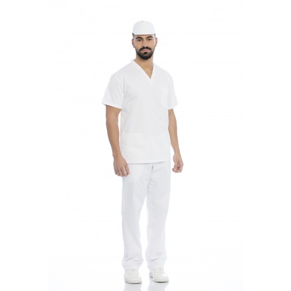 Boné em sarja poliéster-algodão e rede no topo.