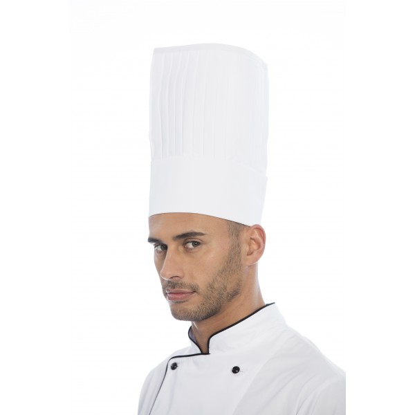 Gorro cozinheiro com goma em sarja poliéster-algodão.