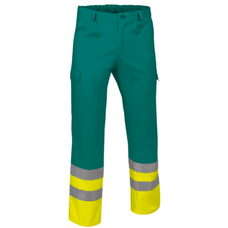 Calça em sarja poliéster-algodão alta visibilidade c/ fitas refletoras