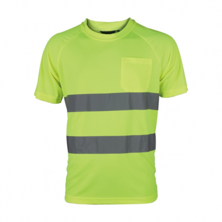 T-shirt de alta visibilidade, 1 bolso superior, gola redonda, 2 faixas de alta visibilidade