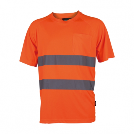 T-shirt de alta visibilidade, 1 bolso superior, gola redonda, 2 faixas de alta visibilidade