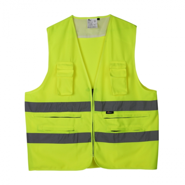 Colete de alta visibilidade - 100% poliéster - Fecho por ZIP - Fitas refletoras - Multibolsos