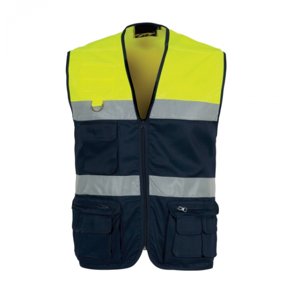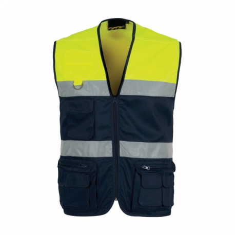 Colete de alta visibilidade - 65% poliéster e 35% algodão - Fitas refletoras - Multi bolsos - Fecho por ZIP