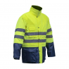 - Parka de alta visibilidade 4 em 1; CARACTERÍSTICAS: - Forro 100% poliéster tafetá 190T; - Acolchoamento 100% poliéster 300D Oxford com 180g/m² revestido a poliuretano; - Costuras seladas (camada exterior); - Capuz oculto; - Zip recoberto com aperto por molas; - Blusão interior com mangas destacáveis; - 4 configurações possíveis de forma a adaptar-se a diferentes situações meteorológicas (Classe 3 para a parka / Classe 1 para o blusão interior); - Bolso para telemóvel (em cada camada); - 2 bolsos inferiores (em cada camada); - Acesso por zip no forro para impressão de logótipo ou bordado (parka exterior); - Cordão de ajuste na cintura; - Fitas refletoras;