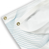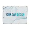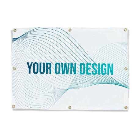 Banner retangular em tecido de poliéster ou tecido impermeável. Possui uma fita de reforço perimetral com ilhós a cada 50 cm ou a cada 100 cm (à sua escolha), o que facilita a sua instalação e atadura em múltiplas superfícies. Concebida para ser feita na horizontal, pode ser personalizada na vertical, seleccionando a largura e a altura de acordo com as medidas de que necessita. A superfície têxtil do banner pode ser impressa com cores e/ou desenhos à sua escolha.