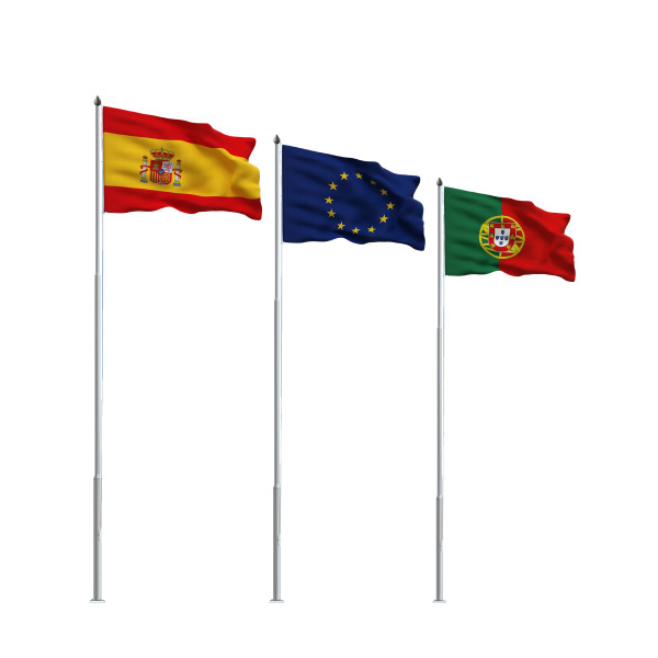 A principal caraterística do mastro institucional é o mais forte e mais alto do nosso stock (8 metros). É recomendado para utilização no exterior devido à sua resistência às condições climatéricas. É feito de alumínio e, graças ao seu sistema na base, pode ser desmontado, dobrado e recolhido para mudar a bandeira ou protegê-la de ventos fortes.