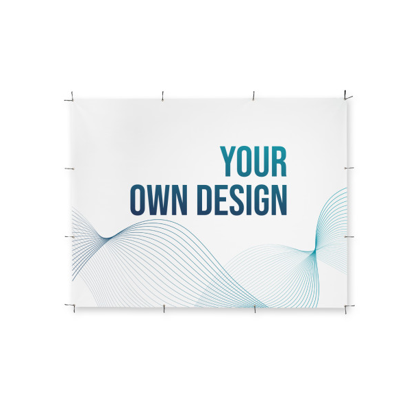 510 g/m² Frontlit printed canvas on one side with the design of your choice, with eyelets on the perimeter to tie to the structure. Canvas size customisable.