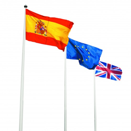 O nosso mastro institucional é o mais forte e o mais alto do nosso stock. É recomendado para utilização no exterior devido à sua resistência às condições climatéricas. É feito de alumínio e, graças ao seu sistema de base, é possível desmontá-lo, dobrá-lo e levantá-lo para mudar a bandeira ou protegê-lo de ventos fortes.