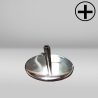 Circular glossy metallic chrome base designed to be placed on horizontal surfaces.