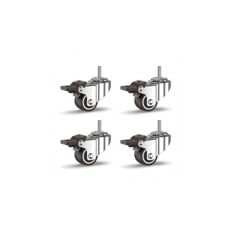 Os rodas giratórias da base Fly Banner (Deluxe ou Hercules) podem rodar 360° de forma suave e silenciosa para facilitar a mobilidade de bandeiras com bases pesadas em pisos regulares. Estão equipados com uma flange para ativar o travão e bloquear o movimento.