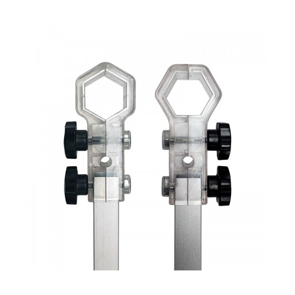 Inclui dois grampos de plástico endurecido aparafusados à barra.
