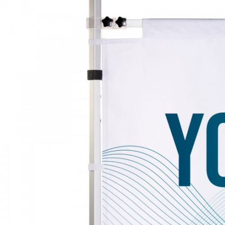 Tecido personalizável de 115 g/m² ou 180 g/m², com bainha superior e velcros laterais.