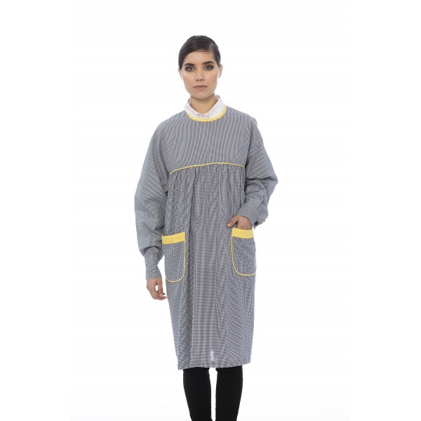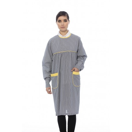 Bata senhora em sarja poliéster-algodão de manga comprida