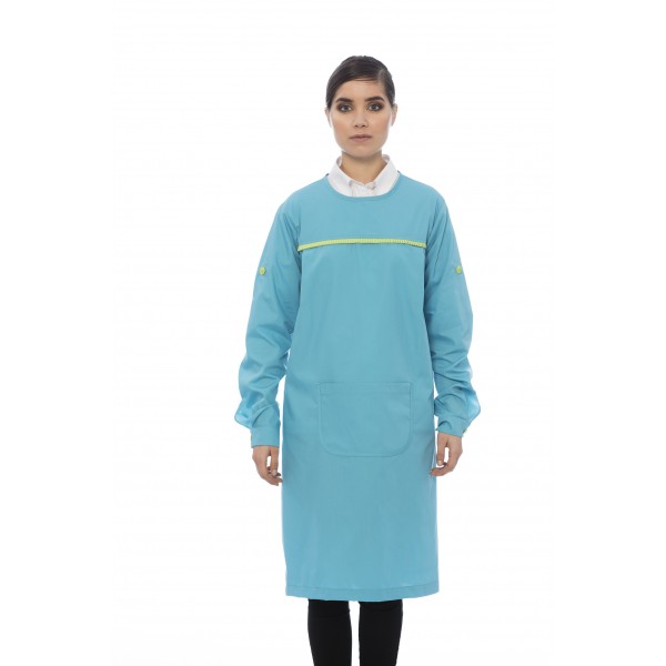 Bata educadora em canvas poliéster-algodão com folhos
