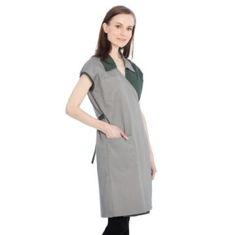 Bata senhora de trespasse em sarja poliéster-algodão.