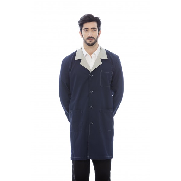 Bata homem em sarja poliéster-algodão.