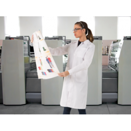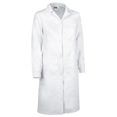 Bata senhora em sarja poliéster-algodão de manga comprida