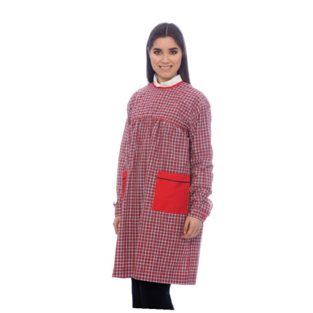 Bata senhora em sarja poliéster-algodão de manga comprida.