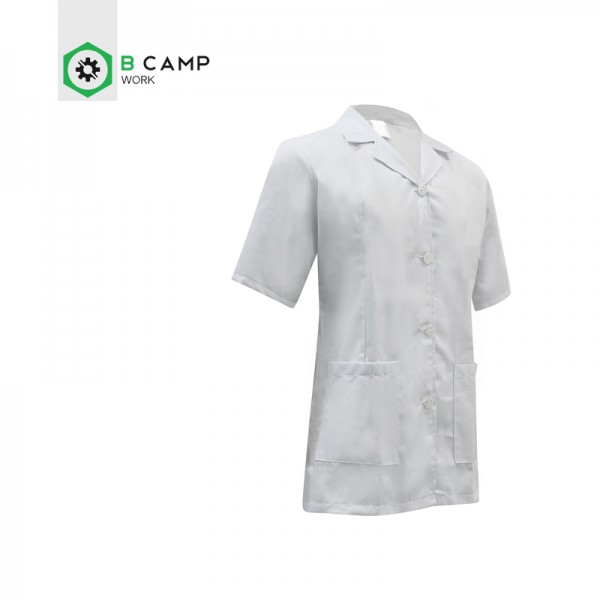 Tunica/Bata curta em sarja branca.