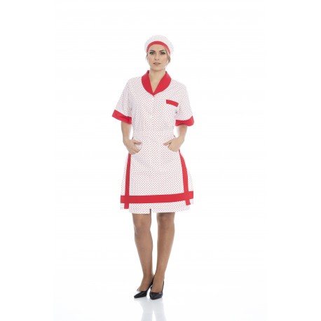 Bata senhora em sarja poliéster-algodão de manga curta.