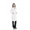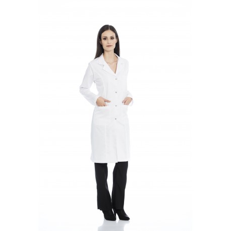 Bata senhora em sarja poliéster-algodão de manga comprida.