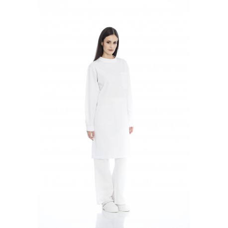 Bata de aperto traseiro manga comprida - 65% poliéster e 35% algodão;