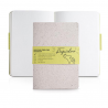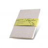 Bloco A5 com capa de matéria orgânica de elefante. Um brinde 100% sustentável, este bloco não precisa de cortar nenhuma árvore para existir! Usando o Upcycling, apresentamos um bloco com folhas lisas de algodão reciclado, altamente duráveis, e uma capa feita através do aproveitamento da matéria orgânica dos elefantes. Todas as informações dos materiais e das diferenças entre a produção deste bloco vs. um bloco comum estão explicadas na tira informativa que envolve o bloco.
