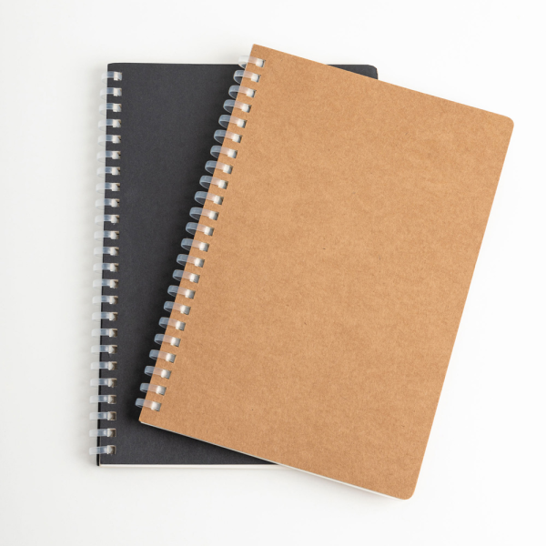 Bloco de notas de argolas A5 em cartão reciclado de pacotes de leite.