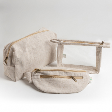 Bolsa em tecido de cânhamo. Uma bolsa com as dimensões certas para levar tudo o que precisa para a sua viagem. Em material natural, com zipper.
