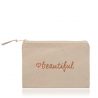 Bolsa 100% algodão 310g. Tem um ótimo tamanho para bolsa cosmética. Com fecho em nylon. Boa área de personalização.