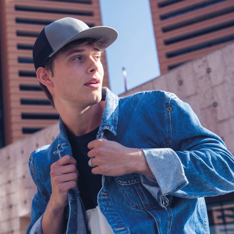 Boné trucker clássico, com 6 painéis, em Sarja de Poliéster reciclado.