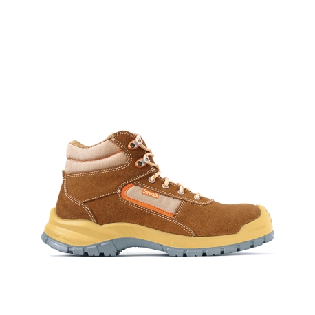 S3 SRC MATERIAL: Camurça; FORRO: Malha tridimensional que proporciona uma melhor fluidez do calor no interior do calçado; Costuras posicionadas simetricamente para garantir uma estrutura fixa e resistente. Reforço anti abrasão em poliuretano na zona do calcanhar; PALMILHA INTERIOR: Amovível em poliuretano, perfurada e forrada a tecido, com absorção de choque na zona do calcanhar. Antiestática; SOLA: Poliuretano de dupla densidade resistente a hidrocarbonetos e antideslizante; BIQUEIRA: Compósito resistente a impactos até 200J; PALMILHA: Não metálica resistente a 1100N;