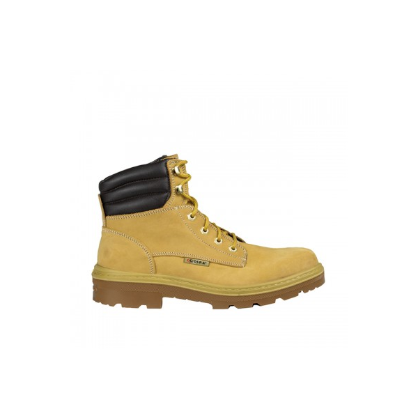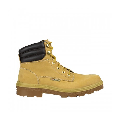 Bota bege em Nubuck (S3); Biqueira em aço com resistência ao impacto a 200J; Palmilha anti perfuração não metálica APT PLATE resistente a 1100 N, muito flexível, leve (50 gr), isolamento térmico, 100% de superfície protegida; Palmilha interior em EVA e tecido, antibacteriana, anatómica, anti abrasão e absorvente; Forro TEXTELLE 100% poliamida transpirável e anti abrasão; Sola em Poliuretano de dupla densidade resistente a hidrocarbonetos (FO); Anti estática (A); Absorção de energia no tacão (E).