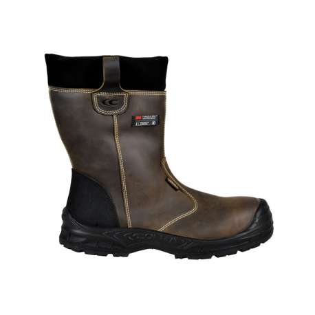 S3 SRC MATERIAL: Pele pigmentada hidrófuga com aperto por velcro (sem cordão); FORRO: Tecido transpirável e resistente à abrasão