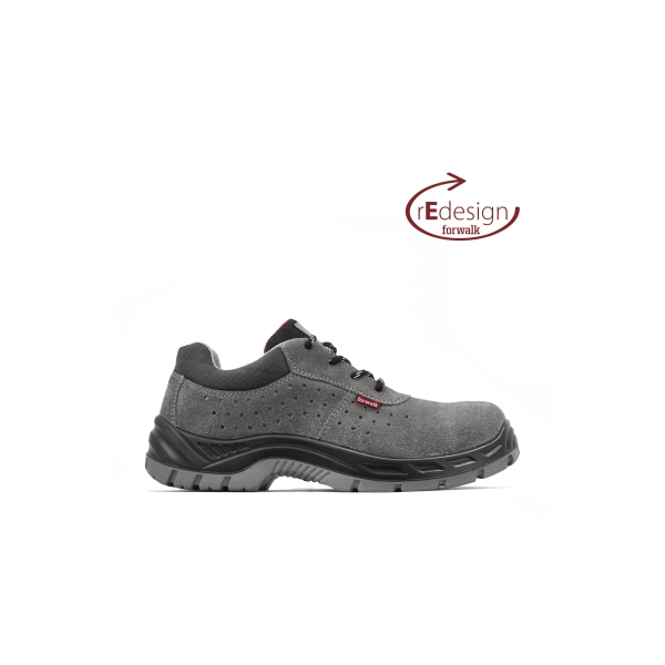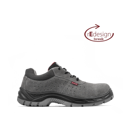 S1P SRC MATERIAL: Camurça perfurada; FORRO: Malha tridimensional (sandwich), que proporciona uma melhor fluidez do calor no interior do calçado; Costuras posicionadas simetricamente para garantir uma estrutura fixa e resistente; Reforço anti abrasão em poliuretano na zona do calcanhar; PALMILHA INTERIOR: Amovível em eva, perfurada e forrada a tecido, com absorção de choque na zona do calcanhar; Antiestática; SOLA: Poliuretano de dupla densidade resistente a hidrocarbonetos e antideslizante; BIQUEIRA: Compósito resistente a impactos até 200J; PALMILHA: Não metálica resistente a 1100N;