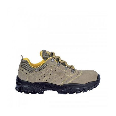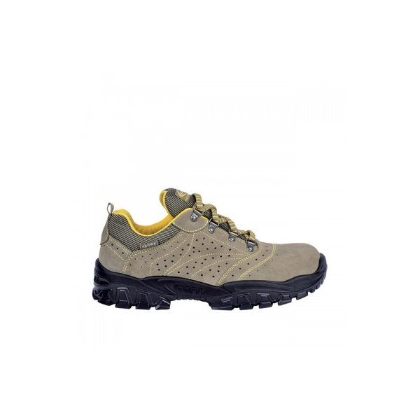 Sapato em camurça bege perfurada (S1P); Biqueira em aço com resistência ao impacto a 200J