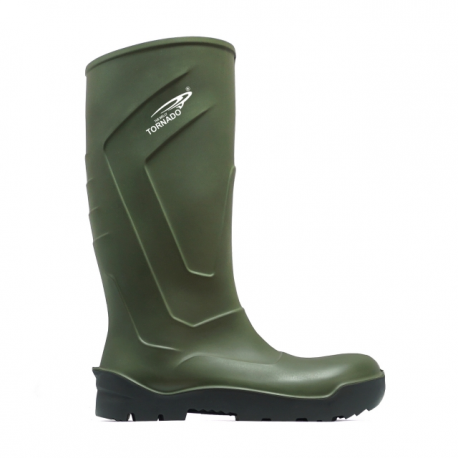 S5 A E FO CI SRC Material: Poliuretano Forro: Nylon antibacteriano resistente à abrasão. Isolamento térmico até -30ºC. Palmilha interior: Amovível, lavável, absorvente, antiderrapante e antibacteriana impedem o aparecimento de microorganismos, reduzindo o mau odor Sola: Poliuretano resistente a hidrocarbonetos, antiestática e antiderrapante. Com absorção de choque na zonha do calcanhar Biqueira: Aço resistente a impactos até 200J Palmilha: Aço resistente a 1100N