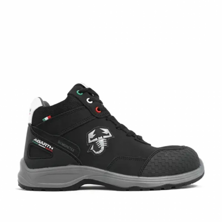 CARACTERÍSTICAS: Bota de segurança S3 em couro nobuck. Com forro interno de excelente qualidade para melhor respirabilidade. - A linha de calçado Abarth Zerocento é fabricada e certificada segundo a norma EN 20345:2011, com biqueira em fibra de vidro extra-resistente e palmilha têxtil anti-perfuração. - Máximo conforto: Leve e flexível. - Repelente à água, antimagnético e livre de metais. - Solado em PU dupla-densidade, SRC antiderrapante, com amortecimento no calcanhar, resistente a hidrocarbonetos. - Palmilha interna respirável e removível com absorção de impacto no calcanhar que favorece a propulsão do pé. - Calçado impermeável WR. - Membrana D-Umbretex para proteção contra água. MARCA: ABARTH