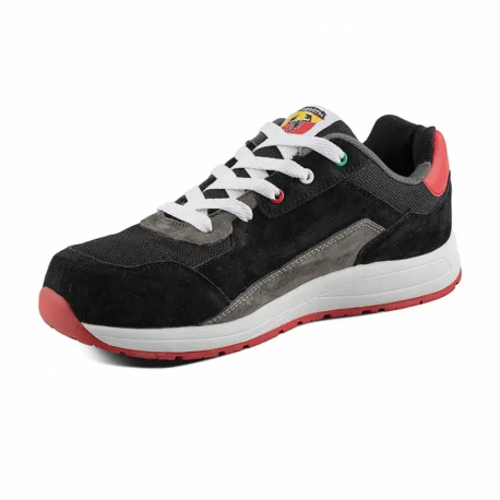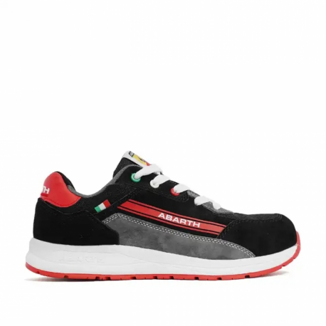 Sapato de segurança S3 em camurça com malha no peito do pé. Com forro interno de excelente qualidade para melhor respirabilidade. - A linha de calçado Abarth 595 é fabricada e certificada segundo a norma EN 20345:2011, com biqueira em fibra de vidro e palmilha têxtil anti perfuração. - Máximo conforto: Leve e flexível. - Repelente à água, antimagnética e livre de metais. - Sola EVA (Etileno, vinil e acetato) borracha, SRC antiderrapante, resistente a hidrocarbonetos, antiestática com absorção de impacto no calcanhar e HRO (resistente até 300°C). - Palmilha respirável e removível com absorção de impacto no calcanhar que beneficia a propulsão do pé. MARCA: ABARTH