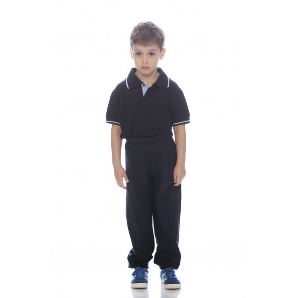 Calça de criança em felpa italiana sem carda poliéster-algodão.