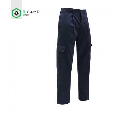 Calça homem bolsos nas pernas em sarja poliéster-algodão