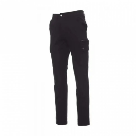 - Calça de homem, stretch, multi-estação, com elásticos laterais e cós com presilhas, fecho de correr e botão de metal, dois bolsos clássicos na frente, dois bolsos grandes laterais com paleta e botões de mola, um bolso com fecho de correr do lado esquerdo, um bolso escamoteável para metro do lado direito, dois bolsos metidos na costura, atrás, fechados com casa e botão;