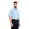 Camisa homem em cambraia poliéster-algodão de manga curta.