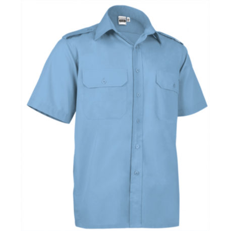 Camisa homem em cambraia poliéster-algodão de manga curta.