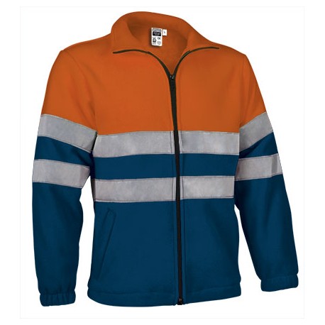 Blusão de ajuste ergonómico de homem, manga ajustada, fecho de correr SBS inteiro, em plástico com cursor em metal autolock, dois bolsos laterais com fecho de correr, um bolso multifuncional no peito com porta- identificação ocultável e paleta LOCK SYSTEM, faixas refletoras 3M nos ombros, elástico e ajuste nos punhos com velcro, capuz amovível e cintura de cordão elástica ajustável;