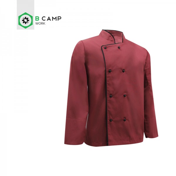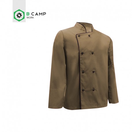 Jaleca cozinheiro em sarja poliéster-algodão de manga comprida